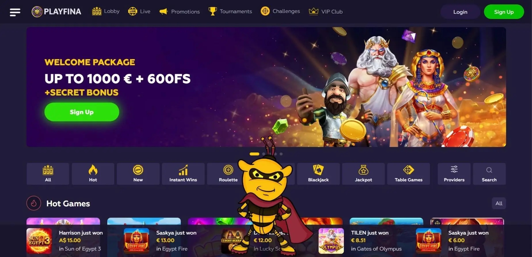 More than 11,000 slots, all varieties of blackjack, dozens of roulette games, craps, video poker, and other games are available to you at Playfina casino online Get the Most Out of Your Winnings with Expert Strategies for Claiming and Utilizing Your Playfina Bonus Code! Play the Best Online Casino Games at Playfina ✓ Try Slots, Blackjack, Roulette, Craps and Video Poker with Huge Bonuses. Playfina Casino How to Start Up to 1000€ + 200 FS + Secret Bonus... Playfina Casino - Bonus Codes – 50 Free Spins!